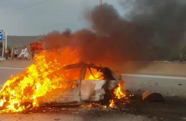 ავტომაგისტრალზე, სოფელ აღაიანთან მანქანა იწვის.