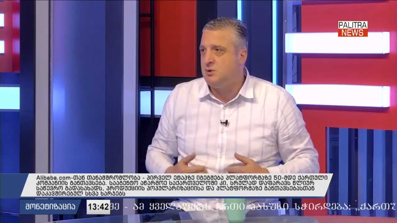 Alibaba.com-თან თანამშრომლობა პირველ ეტაპზე იგეგმება პლატფორმაზე 50-მდე ქართული კომპანიის განთავსება. სააგენტო აწარმოე საქართველოში კი, სრულად დაფარავს წლიურ საწევრო გადასახადს, პროდუქციის პოპულარიზაციისა და პლატფორმაზე განთავსებასთან დაკავშირებულ სხვა ხარჯებს - "მონეტიზაციის" სტუმარია მცირე და საშუალო ბიზნეს ასოციაციის ხელმძღვანელი მიხეილ ჭელიძე.