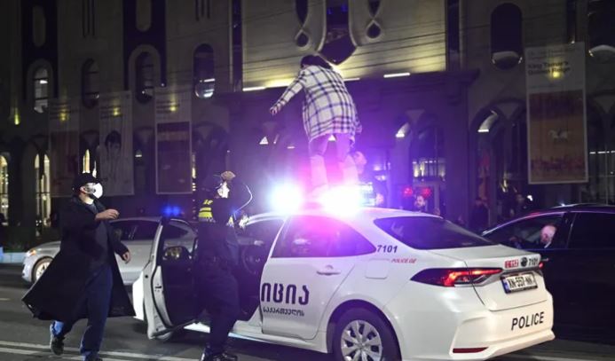 რაც შეეხება ახალგაზრდა ქალს, რომელიც პოლიციის ავტომანქანაზე ავიდა, ის დაკავებულია საქართველოს სისხლის სამართლის კოდექსის 239-ე მუხლით, რაც ხულიგნობას გულისხმობს.
