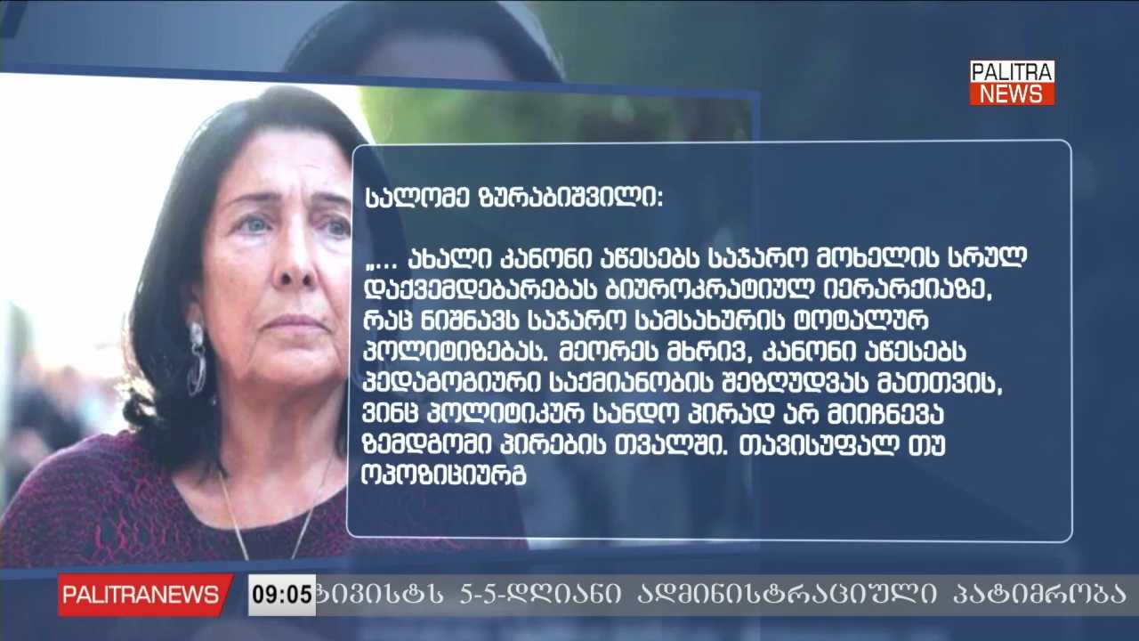 1-ელი ნოემბრიდან ძალაში შევიდა პარლამენტის მიერ მიღებული კანონი, რომლის მიხედვითაც, გამონაკლისის გარდა საჯარო სამსახურში ერთზე მეტ ანაზღაურებად პოზიციაზე დასაქმება იკრძალება. დოკუმენტის მიხედვით, საჯარო სამსახურში დასაქმებულ პირებს დამატებითი საქმიანობის განხორციელება და ანაზღაურების მიღება დაწესებულების ხელმძღვანელის წერილობითი თანხმობის გარეშე არ შეეძლებათ. იმ შემთხვევაში თუ საჯარო სექტორში დასაქმებული პირი აღნიშნულ კანონს დაარღვევს, დაკავებული თანამდებობიდან გათავისუფლდება და 2 წლის განმავლობაში საჯარო სამსახურში მუშაობა აეკრძალება. ინიციატივის ავტორების განმარტებით, გადაწყვეტილება უცხო ქვეყნის ჩარევებს შეამცირებს და საჯარო მოხელეების მხრიდან პირადი ინტერესებით მოქმედების არეალს შეზღუდავს. საკითხს გამოეხმაურა სალომე ზურაბიშვილი. საქართველოს მეხუთე პრეზიდენტის შეფასებით, ამ გადაწყვეტილებით, საჯარო მოხელე სრულად ექვემდებარება ბიუროკრატიულ იერარქიას, რაც საჯარო სამსახურის ტოტალურ პოლიტიზებას ნიშნავს.