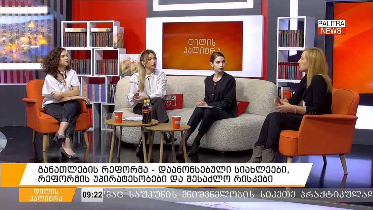 განათლების რეფორმა - დაანონსებული სიახლეები, რეფორმის უპირატესობები და შესაძლო რისკები - "დილის პალიტრის" სტუმარია თსუ-ს ჰუმანიტარულ მეცნიერებათა ასისტენტ პროფესორი ნათია ფიფია.