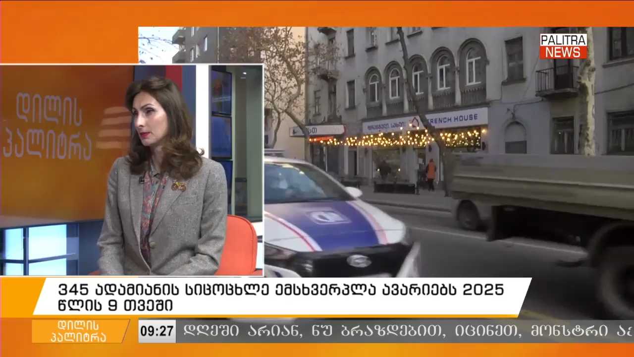 345 ადამიანის სიცოცხლე ემსხვერპლა ავარიებს 2025 წლის 9 თვეში - "დილის პალიტრის" სტუმარია “ალიანსი საგზაო უსაფრთხოებისთვის“ გამგეობის თავმჯდომარე ეკა ლალიაშვილი.