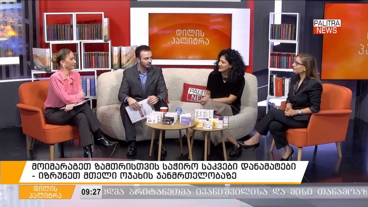 მოიმარაგეთ ზამთრისთვის საჭირო საკვები დანამატები - იზრუნეთ მთელი ოჯახის ჯანმრთელობაზე - "დილის პალიტრის" სტუმრები არიან საერთაშორისო ფარმაცევტული კომპანია „GM PHARMA”-ს პროდუქციის მენეჯერი ნინი უდუმაშვილი და საერთაშორისო ფარმაცევტული კომპანია „GM PHARMA”-ს სააფთიაქო გაყიდვების მენეჯერი ჟანა მაღლაკელიძე