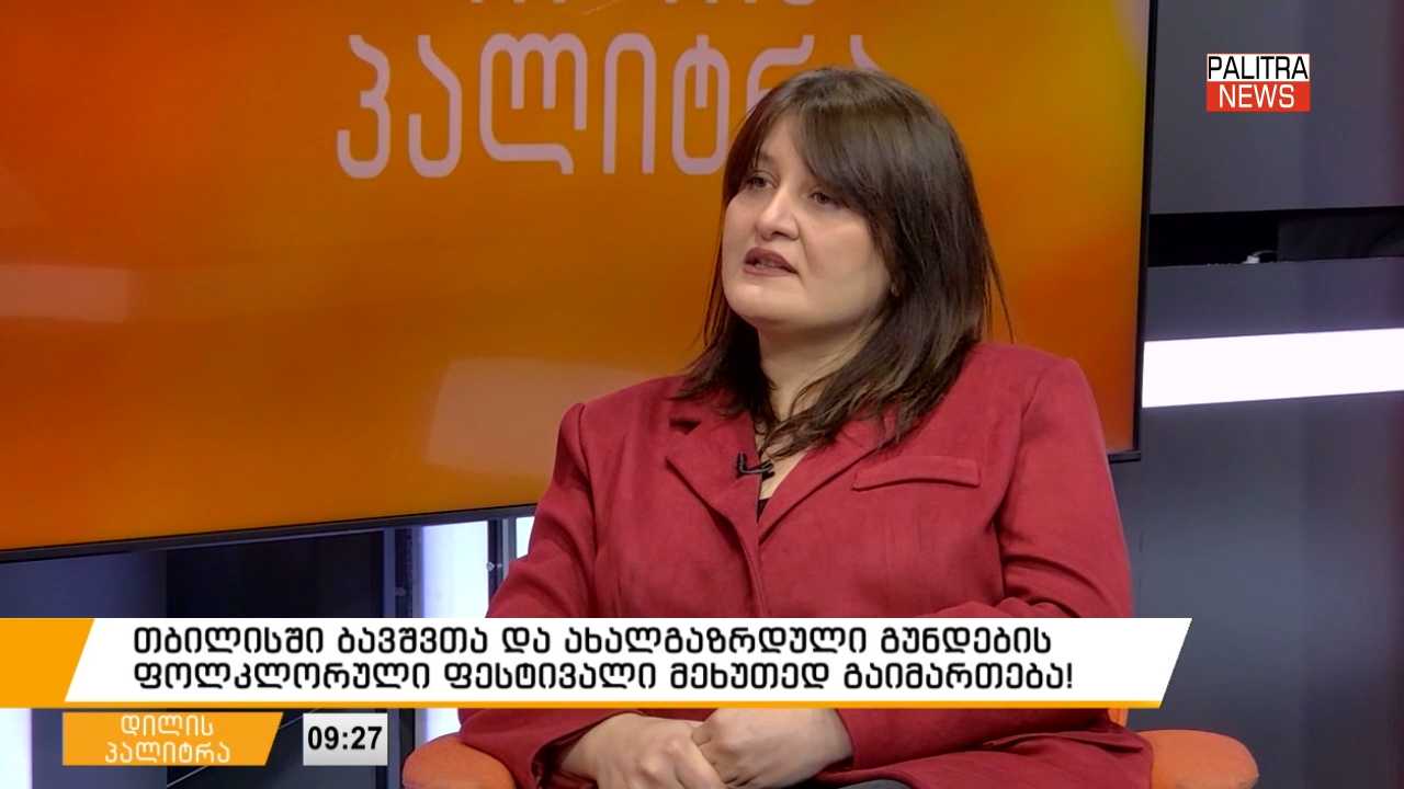 თბილისში ბავშვთა და ახალგაზრდული გუნდების ფოლკლორული ფესტივალი მეხუთედ გაიმართება! - "დილის პალიტრის" სტუმარია ფესტივალის პროდიუსერი ანანო ხიჯაკაძე.