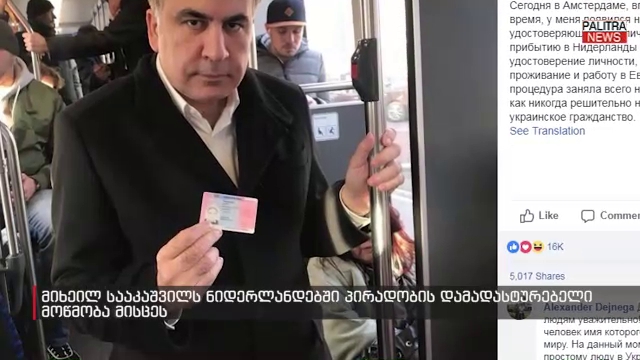 მიხეილ სააკაშვილს ნიდერლანდებში პირადობის დამადასტურებელი მოწმობა მისცეს - Palitra News