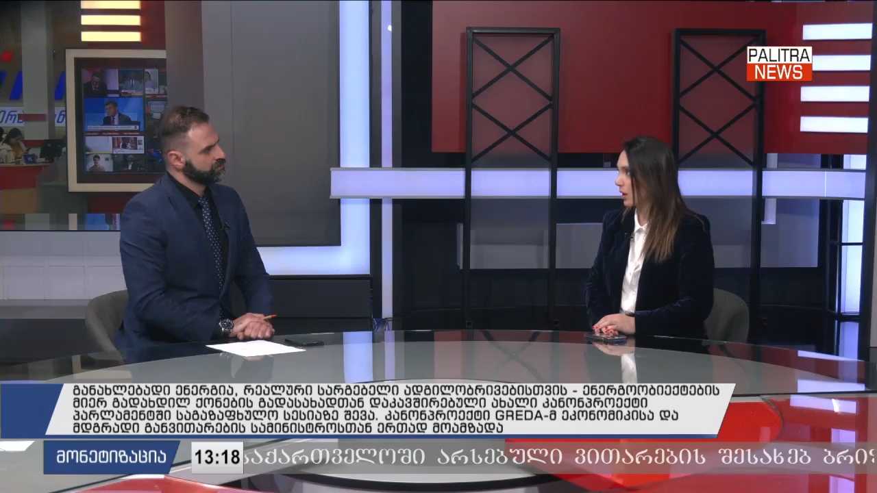 განახლებადი ენერგია, რეალური სარგებელი ადგილობრივებისთვის - ენერგოობიექტების მიერ გადახდილ ქონების გადასახადთან დაკავშირებული ახალი კანონპროექტი პარლამენტში საგაზაფხულო სესიაზე შევა. კანონპროექტი GREDA-მ ეკონომიკისა და მდგრადი განვითარების სამინისტროსთან ერთად მოამზადა
