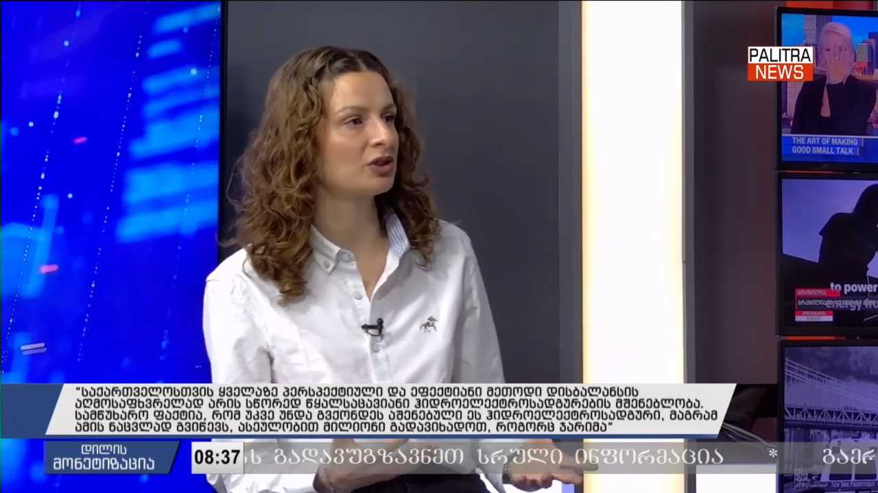 “საქართველოსთვის ყველაზე პერსპექტიული და ეფექტიანი მეთოდი დისბალანსის აღმოსაფხვრელად არის სწორედ წყალსაცავიანი ჰიდროელექტროსადგურების მშენებლობა. სამწუხარო ფაქტია, რომ უკვე უნდა გვქონდეს აშენებული ეს ჰიდროელექტროსადგური, მაგრამ ამის ნაცვლად გვიწევს, ასეულობით მილიონი გადავიხადოთ, როგორც ჯარიმა“