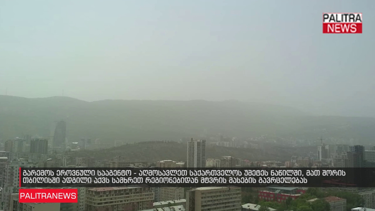 აღმოსავლეთ საქართველოს უმეტეს ნაწილში, მათ შორის თბილისში ადგილი აქვს ქვეყნის სამხრეთ რეგიონებიდან მტვრის მასების გავრცელებას, - ამის შესახებ გარემოს ეროვნული სააგენტოს ინფორმაციაშია ნათქვამი.მისივე განმარტებით, აღნიშნული განპირობებულია არსებული სინოპტიკური სიტუაციის გამო. "მსგავსი სინოპტიკური პროცესების დროს საქართველოს ტერიტორიაზე სამხრეთიდან მტვრის მასების გავრცელება დამახასიათებელია", - აცხადებენ სააგენტოს სპეციალისტები.