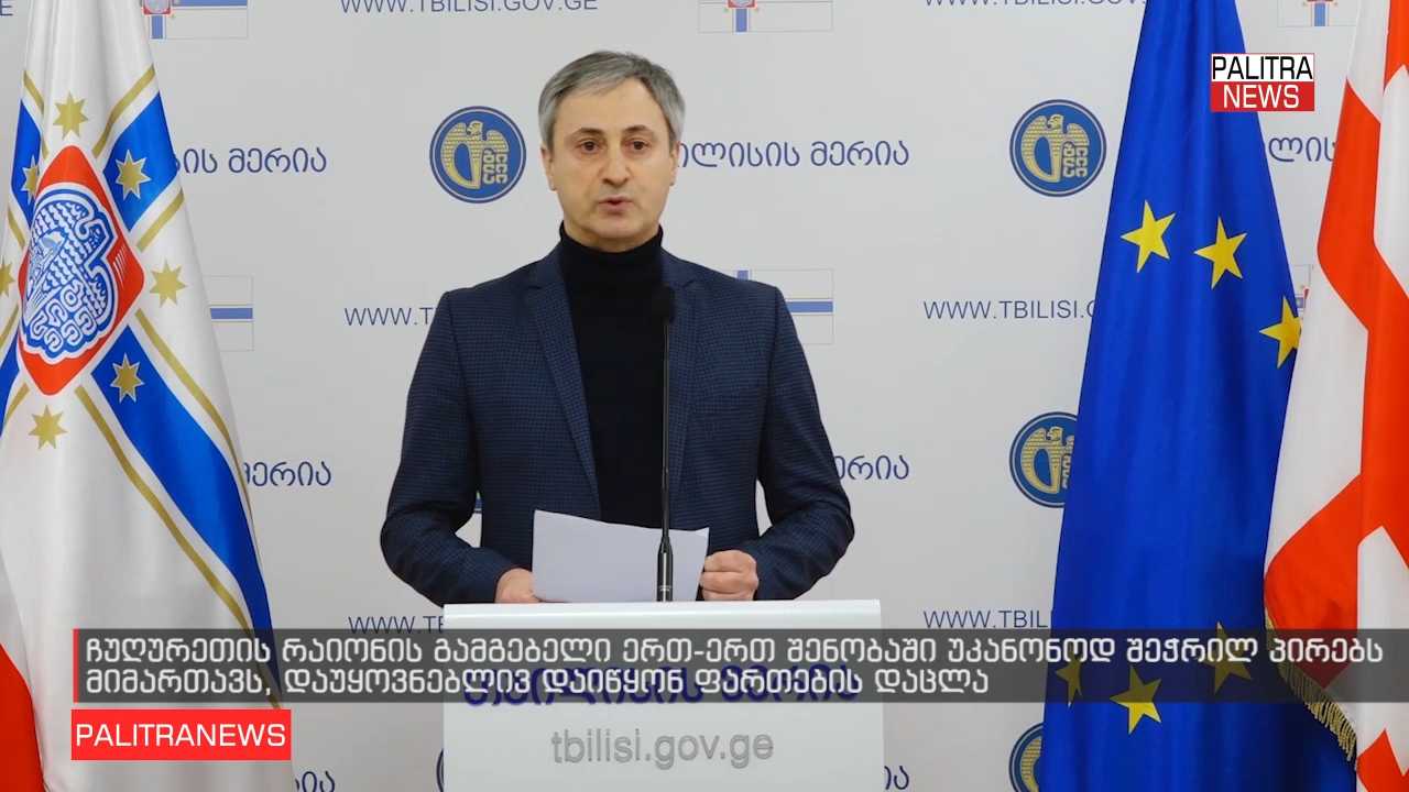 ჩუღურეთის რაიონის გამგებელი ერთ-ერთ შენობაში უკანონოდ შეჭრილ პირებს მიმართავს, დაუყოვნებლივ დაიწყონ ფართების დაცლა. ზურაბ ჩიკვილაძის განცხადებით, ჩუღურეთის რაიონის გამგეობის თანამშრომლებმა მოიძიეს ფართები, სადაც ჩუბინაშვილის 52/ კონსტიტუციის ქუჩა 6-ში მდებარე შენობა-ნაგებობაში შეჭრილ პირებსა და ოჯახებს ქირით გადაიყვანენ.