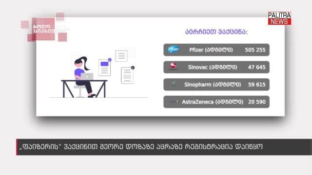 ფაიზერის“ ვაქცინით მეორე დოზაზე აცრაზე რეგისტრაცია დაიწყო. აცრაზე დარეგისტრირება booking.moh.gov.ge- ზეა შესაძლებელი.