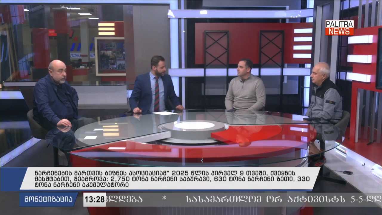 ნარჩენების მართვის ბიზნეს ასოციაციამ“ 2025 წლის პირველ 9 თვეში, ქვეყნის მასშტაბით, შეაგროვა: 2,750 ტონა ნარჩენი საბურავი, 630 ტონა ნარჩენი ზეთი, 330 ტონა ნარჩენი აკუმულატორი - "მონეტიზაციის" სტუმრები არიან საქართველოს ნარჩენების მართვის ბიზნეს ასოციაციის აღმასრულებელი დირექტორი ვანო მთვრალაშვილი, საქართველოს ნარჩენების მართვის ბიზნეს ასოციაციის ვიცე-პრეზიდენტი ნიკოლოზ ხოდელი და “ავტობანის” დამფუძნებელი ბაკურ ხუნდაძე.