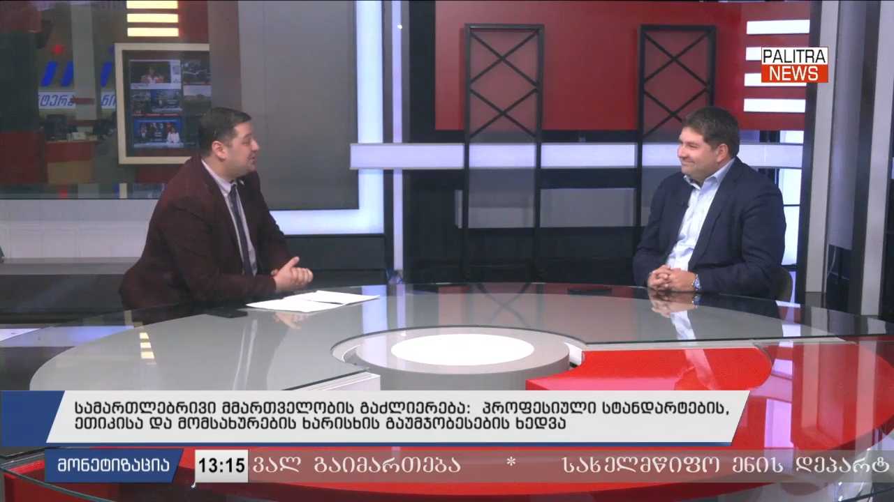 სამართლებრივი მმართველობის გაძლიერება: პროფესიული სტანდარტების, ეთიკისა და მომსახურების ხარისხის გაუმჯობესების ხედვა - "მონეტიზაციის" სტუმარია სამართლის დოქტორი, საქართველოს მედიატორთა ასოციაციის თავმჯდომარე ირაკლი ყანდაშვილი.
