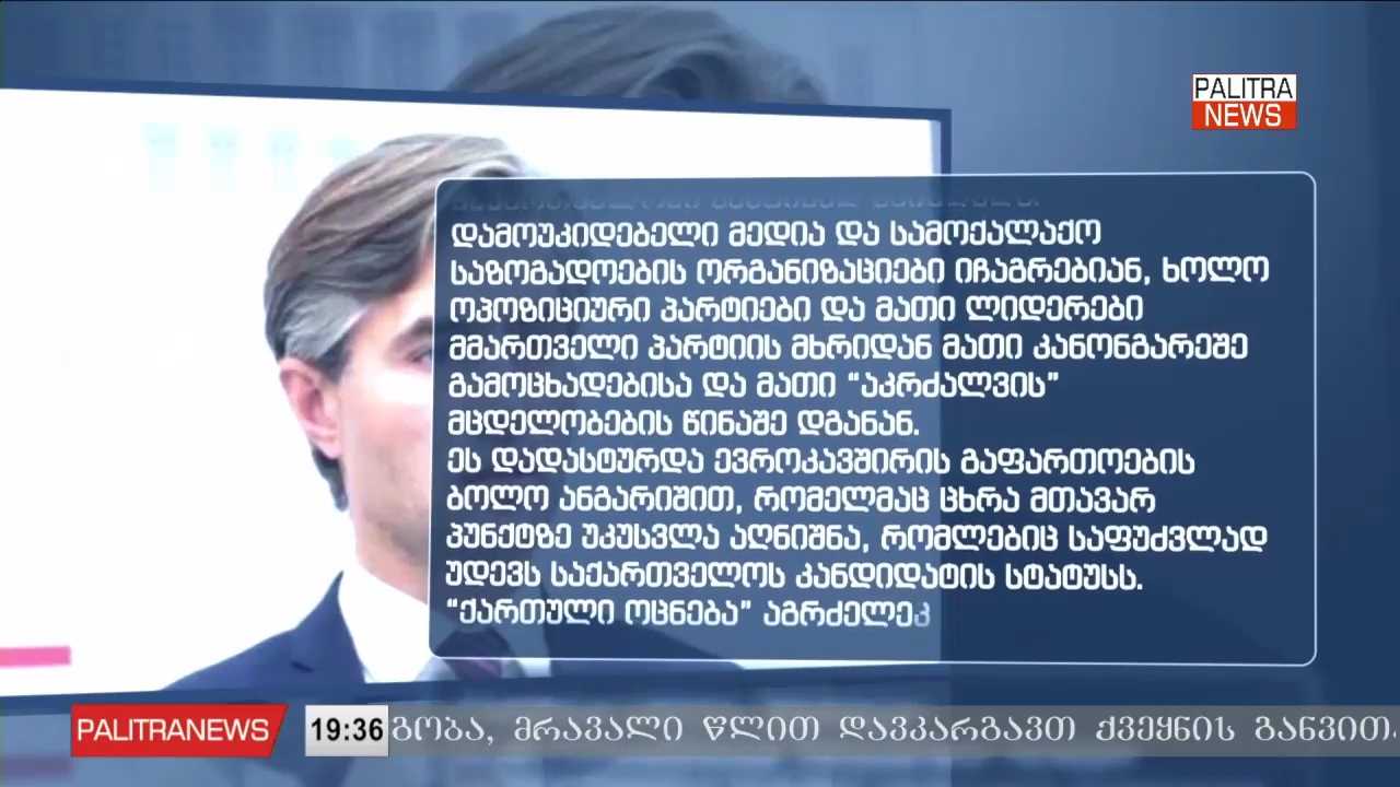 „ქართული ოცნება“ ევროკავშირის მიმართ რიტორიკას არ ცვლის და აცხადებს, რომ ბრიუსელთან ხვეწნას არ აპირებს, თუმცა ისინი მოლაპარაკებისთვის მზად არიან. „ქართული ოცნების“ ლიდერთა განცხადებით, მოლაპარაკებები არა საქართველის ხელისუფლებამ არამედ ევროკავშირმა შეაჩერა. მწვავე განცხადებების ფონზე ევროპელი ლიდერები საქართველის მიმართ მწვავე განცხადებებს არ ერიდებიან და ამბობენ, რომ ბოლი 1 წლის განმავლობაში განვითარებული მოვლენების პარალელურად, საქართველოში დემოკრატიის უკუსვლაზე საუბრობენ. ოპოზიციონერი პოლიტიკოსების განცხადებით კი ქართული ოცნების პირობებში ევროკავშირში გაწევრიანება შეუძლებელია და ამ ყველაფერს საზოგადოება კარგად ხედავს.