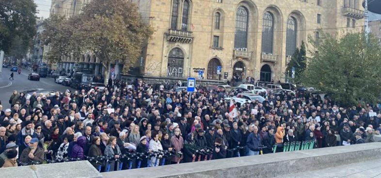 რუსთაველის მეტროს მიმდებარედ, საპროტესტო აქცია იმართება.