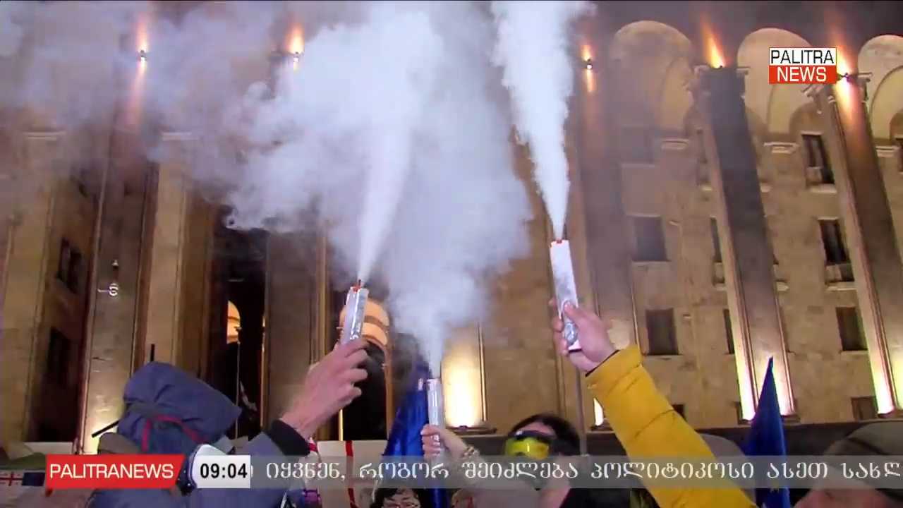 „ჩვენ მოგვწამლეს” - ამ ლოზუნგით პარლამენტის წინ საპროტესტო აქცია გაიმართა. დემონსტრანტებმა საკანონმდებლო ორგანოსთან სიმბოლურად ფერადი კვამლი გაუშვეს, რითაც BBC-ის მიერ ჩატარებულ ჟურნალისტურ გამოძიებას გამოეხმაურნენ. მოგვიანებით აქციის მონაწილეებმა საპროტესტო მსვლელობა დაიწყეს, ისინი რუსთაველის მეტროს მიმართულებით გადაადგილდებოდნენ. ერთ წელზე მეტია აქციის მონაწილეები ქვეყანაში ახალი საპარლამენტო არჩევნების ჩატარებასა და აქციაზე დაკავებულების გათავისუფლებას მოითხოვენ. დემონსტრანტებს საკანონმდებლო ორგანოს წინ გაშლილი ჰქონდათ საქართველოსა და ევროკავშირის დროშები.
