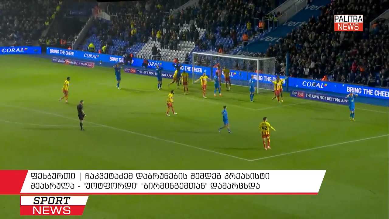 ფეხბურთი | ჩაკვეტაძემ დაბრუნების შემდეგ პრეასისტი შეასრულა - "უოტფორდი" "ბირმინგემთან" დამარცხდა - Palitra News