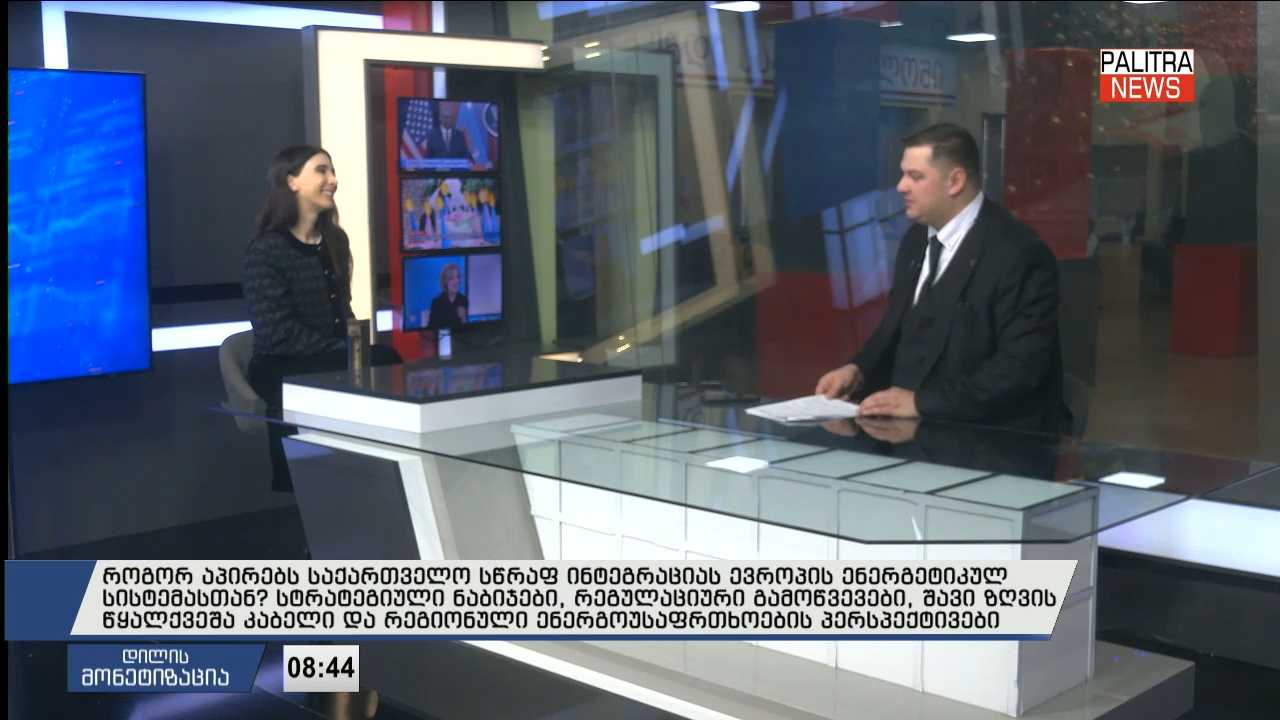 როგორ აპირებს საქართველო სწრაფ ინტეგრაციას ევროპის ენერგეტიკულ სისტემასთან? სტრატეგიული ნაბიჯები, რეგულაციური გამოწვევები, შავი ზღვის წყალქვეშა კაბელი და რეგიონული ენერგოუსაფრთხოების პერსპექტივები - "დილის პალიტრის" სტუმარია ენერგეტიკული გაერთიანების წარმომადგენელი საქართველოში სალომე ჯანელიძე.