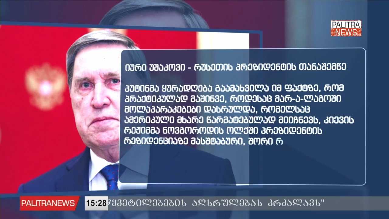 აშშ-ის პრეზიდენტმა, დონალდ ტრამპმა ვლადიმირ პუტინთან მორიგი სატელეფონო საუბარი გამართა. ტრამპის განცხადებით, პუტინთან გასაუბრება ნაყოფიერი აღმოჩნდა. როგორც ტრამპი ამტკიცებს, პუტინმა მას შეატყობინა, რომ რუსეთის ნოვგოროდის ოლქში მდებარე მის რეზიდენციაზე თავდასხმას შეეცადნენ. აშშ-ის პრეზიდენტმა აღნიშნა, რომ თავდასხმის შესახებ ინფორმაცია, შესაძლოა, ყალბია და, სავარაუდოდ, ის არც განხორციელებულა. რუსეთის ხელისუფლებამ გაავრცელა ინფორმაცია, რომ გასულ ღამეს უკრაინულმა მხარემ დრონების გამოყენებით ნოვგოროდის ოლქში მდებარე, ვლადიმირ პუტინის რეზიდენციაზე თავდასხმა სცადა. ამავდროულად, უკრაინის პრეზიდენტმა, ვოლოდიმირ ზელენსკიმ განაცხადა, რომ ოფიციალური მოსკოვი ტრამპთან გამართული შეხვედრით უკმაყოფილოა და იგონებს მიზეზებს იმისთვის, რომ კიევში სამთავრობო შენობებზე თავდასხმა მოაწყოს.