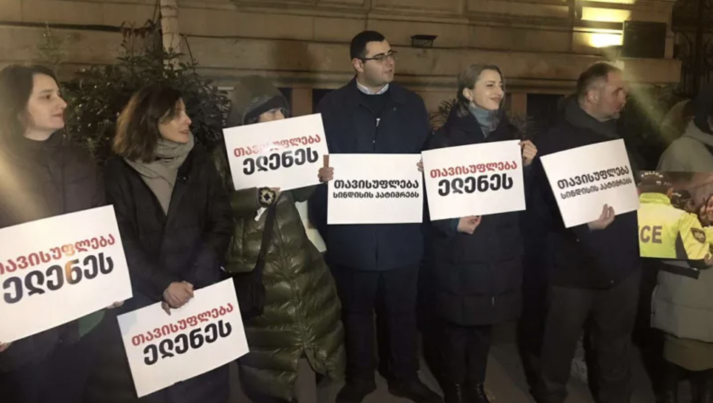 თბილისში უზენაეს სასამართლოსთან „კოალიცია ცვლილებისთვის" ერთ-ერთი ლიდერის ელენე ხოშტარიას სოლიდარობის აქცია მიმდინარეობს.