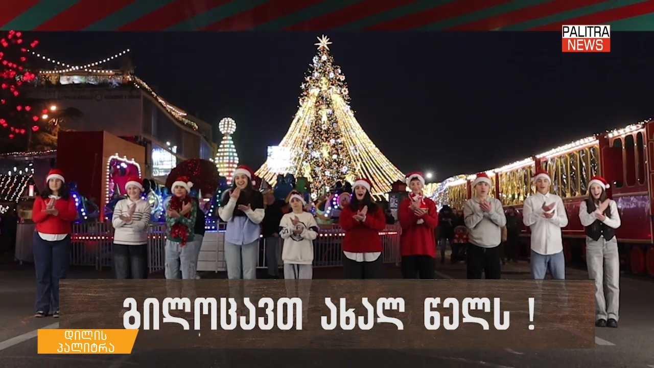 სმენის არმქონე და სმენადაქვეითებული მოზარდები, თბილისის 203-ე საჯარო სკოლის უფროსკლასელები საახალწლო თემაზე შექმნილი მუხრან მაჭავარიანის ლექსით „გილოცავ.“