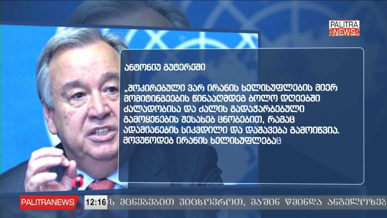 საერთაშორისო მედიის ინფორმაციით, ირანში აქციების დროს 500-ზე მეტი ადამიანი დაიღუპა. მსოფლიო ლიდერები ირანის ხელისუფლებას მოუწოდებენ , თავი შეიკავოს ძალის არასაჭირო ან არაპროპორციული გამოყენებისგან. აშშ-ის პრეზიდენტის დონალდ ტრამპი აცხადებს, რომ ირანის ლიდერებს მოლაპარაკება სურთ და ამ მიზნით გუშინ დაურეკეს. როგორც მან აღნიშნა, ირანში საპროტესტო მოძრაობის მხარდაჭერასთან დაკავშირებით ძალიან სერიოზულ ვარიანტებს განიხილავს.