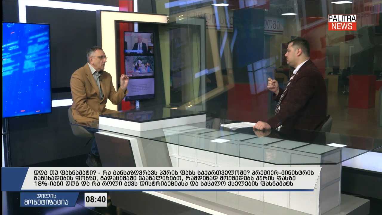 დღგ თუ ფასნამატი? - რა განსაზღვრავს პურის ფასს საქართველოში? პრემიერ-მინისტრის განცხადების ფონზე, გადაცემაში ვაანალიზებთ, რამდენად მოქმედებს პურის ფასზე 18%-იანი დღგ და რა როლი აქვს დისტრიბუციასა და საცალო ქსელების ფასნამატს - "დილის მონეტიზაციის" სტუმარია საქართველოს ხორბლის და ფქვილის მწარმოებელთა ასოციაცია ლევან სილაგავა