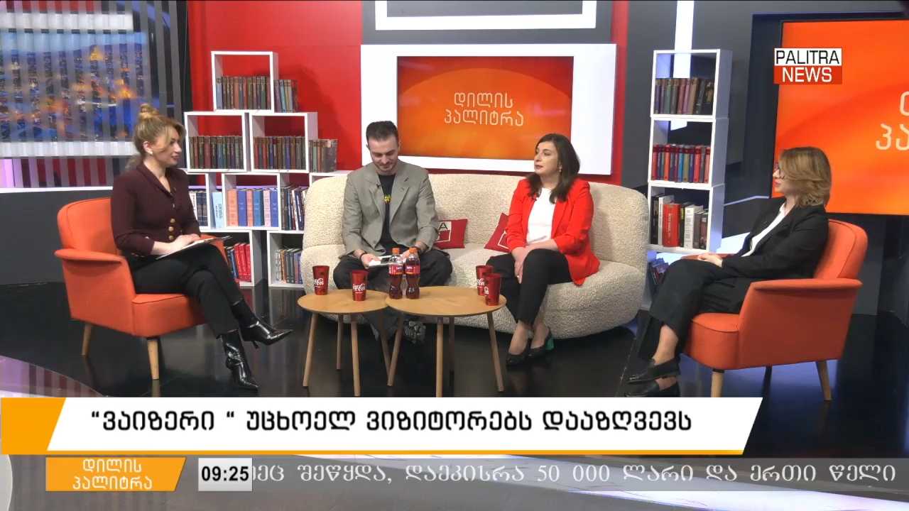 “ვაიზერი “ უცხოელ ვიზიტორებს დააზღვევს - "დილის პალიტრის" სტუმრები სადაზღვევო კომპანია "ვაიზერის" სამეთვალყურეო საბჭოს თავმჯდომარე სოფიო ლებანიძე და სადაზღვევო კომპანია "ვაიზერის" გენერალური დირექტორი მაია კალანდაძე.