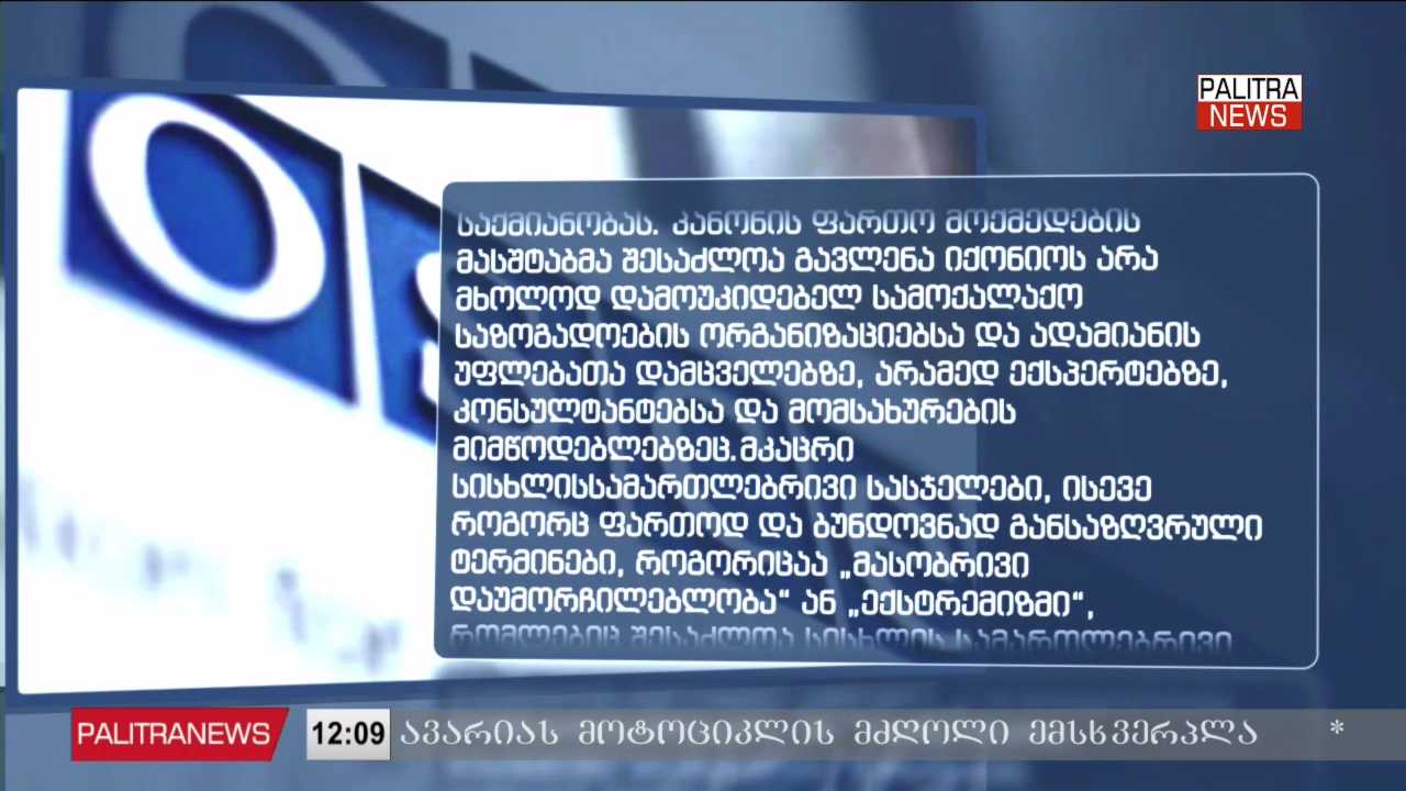მათი შეფასებით, პარლამენტის მიერ მიღებული ცვლილებები ქვეყანაში პოლიტიკური საქმიანობისა და სამოქალაქო სივრცის შეზღუდვას ემსახურება. ახალი კანონმდებლობა უცხოური დაფინანსების მიღებასა და პოლიტიკურ აქტივობას მკაცრად არეგულირებს და გარკვეულ შემთხვევებში სისხლის სამართლის პასუხისმგებლობასაც ითვალისწინებს. ევროკავშირის წარმომადგენლების განცხადებით, ბუნდოვანმა ნორმებმა შესაძლოა სამართლებრივი გაურკვევლობა და შერჩევითი აღსრულების რისკი გაზარდოს.