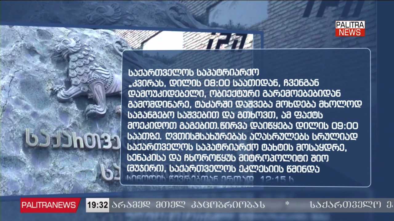 სამების საკათედრო ტაძარში სამოქალაქო პანაშვიდი გრძელდება. მეოთხე დღეა ტაძარში მიმავალი მოქალაქეების უწყვეტის ნაკადი არ წყდება. ამ დრომდე სამების საკათედრო ტაძარი 24 საათის განმავლობაში ღია იყო თუმცა უკვე ხვალ ღამის ორი საათიდან დილის რვა საათამდე ტაძარი დაიკეტება, რათა მოწესრიგდეს და მომზადდეს წირვისა და ილია II-ის დაკრძალვის ცერემონიისათვის. დღეს წმინდა სამების საკათედრო ტაძარში, საქართველოში არსებული სხვადასხვა რელიგიური ორგანიზაციების წარმომადგენლები, სასულიერო ლიდერები, იმყოფებოდნენ, კათოლიკოს-პატრიარქის პანაშვიდზე მივიდა ვატიკანის დელეგაციაც. უცხო ქვეყნიდან ჩამოვლენ დაკრძალვის დღესაც. ხვალ 12 საათზე ელოდებიან მსოფლიო პატრიარქს, რომელიც წესის აგების მსახურებას შეასრულებს.