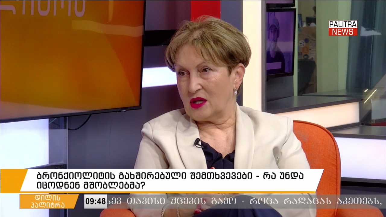 ბრონქიოლიტის გახშირებული შემთხვევები - რა უნდა იცოდნენ მშობლებმა? - "დილის პალიტრის" სტუმარია პროფესორი, მედიცინის აკადემიური დოქტორი, ი.ციციშვილის სახელობის ბავშვთა კლინიკის სამედიცინო დირექტორი მაია ჩხაიძე.