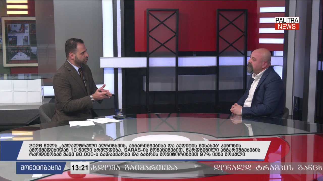 2026 წელს „ბუღალტრული აღრიცხვის, ანგარიშგებისა და აუდიტის შესახებ" კანონის ამოქმედებიდან 10 წელი სრულდება. SARAS-ის მონაცემებით, წარდგენილი ანგარიშგებების რაოდენობამ უკვე 80,000-ს გადააჭარბა და ბაზრის მონიტორინგით 97% იქნა მოცული - "დილის მონეტიზაციის" სტუმარია Grant Thornton-ის მმართველი პარტნიორი ვახტანგ ცაბაძე.