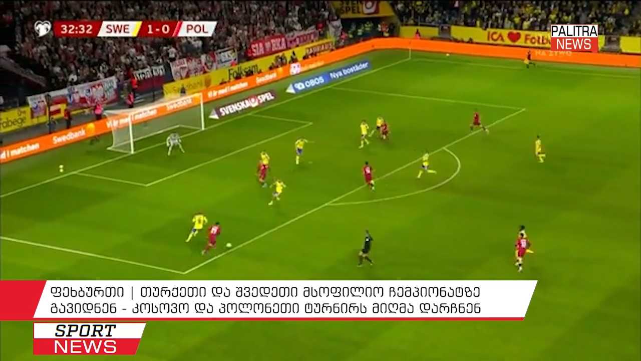 ფეხბურთი | თურქეთი და შვედეთი მსოფლიო ჩემპიონატზე გავიდნენ - კოსოვო და პოლონეთი ტურნირს მიღმა დარჩნენ