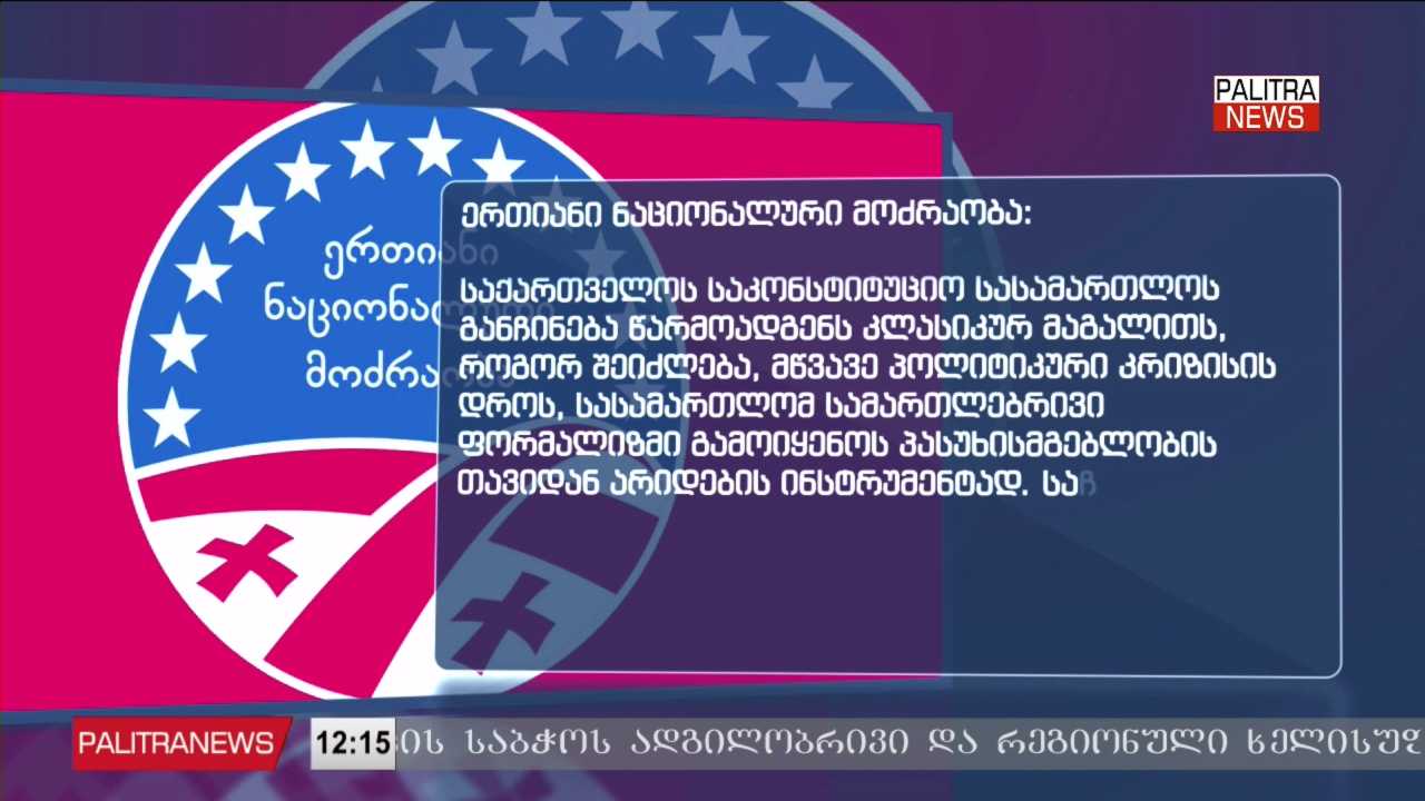საკონსტიტუციო სასამართლომ „ნაციონალური მოძრაობის“ ხელისუფლების საქმიანობის შემსწავლელი კომისიის არაკონსტიტუციურად ცნობის შესახებ „ნაციონალური მოძრაობის“ სარჩელი განსახილველად არ მიიღო. პარტია მიიჩნევს, რომ ამ გადაწყვეტილებით საკონსტიტუციო სასამართლოს პირველმა კოლეგიამ „კიდევ ერთხელ წაახალისა „ქართული ოცნების“ მიერ კონსტიტუციის პრინციპების უგულებელყოფა და თვითნებობა“ ნაციონალური მოძრაობა კიდევ ერთხელ მოითხოვს პარტიათა აკრძალვის სარჩელის დასაშვებობის საკითხი ზეპირი განხილვის საფუძველზე გადაწყდეს.