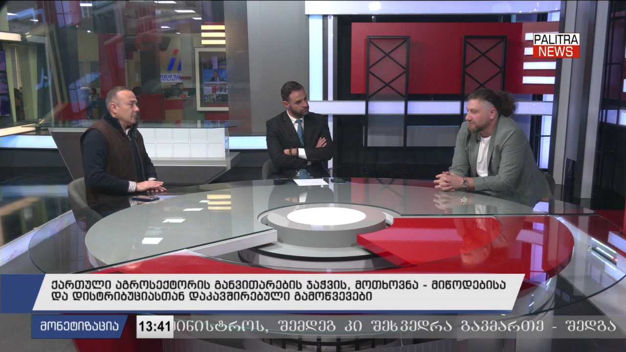ქართული აგროსექტორის განვითარების ჯაჭვის, მოთხოვნა - მიწოდებისა და დისტრიბუციასთან დაკავშირებული გამოწვევები - "მონეტიზაციის" სტუმრები არიან კომპანია „იმერის“ დამფუძნებელი ნიკოლოზ კიკნაძე და GDB Agro- ს სამეთვალყურეო საბჭოს წევრი ივა ჭყონია.