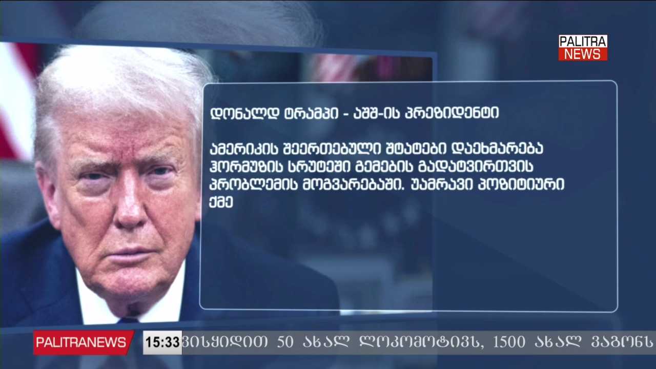 39 დღიანი კონფლიქტის შემდეგ პირველად, აშშ-სა და ირანს შორის, 10 დღიანი ცეცხლის შეწყვეტის შეთანხმება დაიდო. მოლაპარაკებების დაწყებას საფუძვლად, ჰორმუზის სრუტის გახსნა უნდა დაედოს. სრუტეში მიმოსვლის აღდგენის ხელშეწყობის მიზნით მისიას დაახლოებით 15 ქვეყანა გეგმავს. თუმცა, სადავო საკითხებს შორის კიდევ 15-მდე პუნქტია. დონალდ ტრამპი აცხადებს, რომ უმეტეს ნაწილზე შეთანხმება მიღწეულია. შეთანხმების პრინციპებით კმაყოფილია თეირანი. ირანის პრეზიდენტი მასუდ ფეზეშქიანი აცხადებს, რომ პირობები თეირანის ზოგად ინტერესებს შეესაბამება. ქვეყნებს შორის მიღწეულ შეთანხმებას მიესალმება საერთაშორისო საზოგადოება. რა პირობებს მოიცავს მოლაპარაკებების ეტაპი?!
