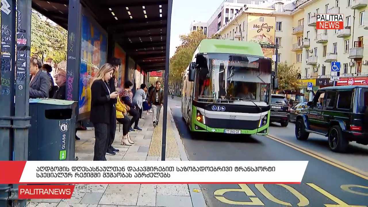 დედაქალაქის საზოგადოებრივი ტრანსპორტი სპეციალურ რეჟიმში მუშაობას აგრძელებს. აღდგომის დღესასწაულთან დაკავშირებით დანიშნულია დროებითი ავტობუსის მარშრუტი მეტროსადგურებიდან სასაფლაოების მიმართულებით. მარშრუტები მოემსახურება მუხათგვერდის, ვაშლიჯვრის, კუკიის, ახალი კუკიის, მახათას, საბურთალოს, ღრმაღელის, ველისა და ვარკეთილის სასაფლაოებს. ავტობუსები იმოძრავებენ მეტროსადგურებიდან: „მარჯანიშვილი“, „დელისი“, „სარაჯიშვილი“, „ვარკეთილის“ მიმდებარე ტერიტორიიდან, ასევე, „დიდუბის“ ზედა გასასვლელიდან, სადგურის მოედნიდან და ვარკეთილის III მასივიდან. გზავრობა უფასოა.