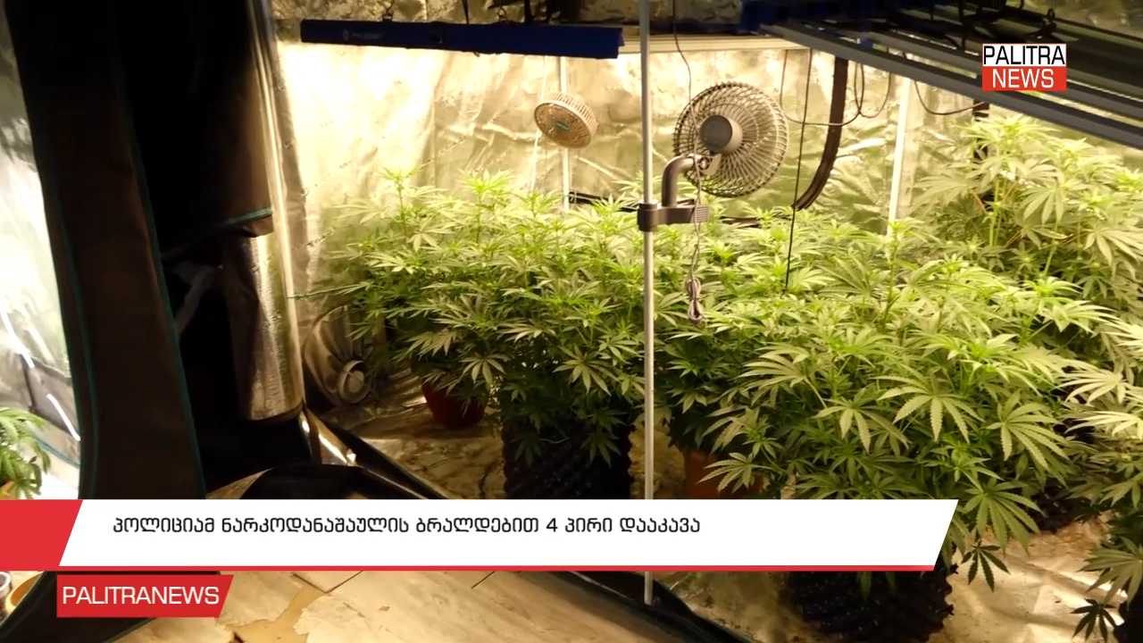 პოლიციამ ნარკოდანაშაულის ბრალდებით 4 პირი დააკავა. მათ ბრალად განსაკუთრებით დიდი ოდენობით ნარკოტიკული საშუალებების უკანონო შეძენა-შენახვა, რეალიზაციის ხელშეწყობა და ნარკოტიკული საშუალების შემცველი მცენარის უკანონო კულტივირება ედებათ. დგინდება, რომ ნარკოდანაშაულის ბრალდებით დაკავებულთაგან ორ პირს, საცხოვრებელ სახლებში მოწყობილი ჰქონდათ სპეციალური სათბურები, სადაც ნარკოტიკული საშუალების შემცველი მცენარის უკანონო დათესვა-მოყვანას ახდენდნენ. დანაშაული 20 წლამდე ან უვადო თავისუფლების აღკვეთას ითვალისწინებს.