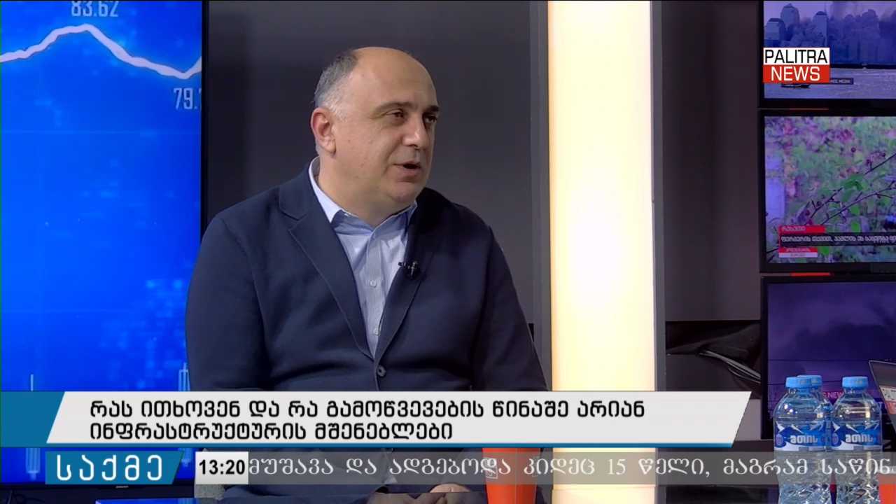 რას ითხოვენ და რა გამოწვევების წინაშე არიან ინფრასტრუქტურის მშენებლები - გადაცემა "საქმის" სტუმარია ინფრასტრუქტურის მშენებელთა ასოციაციის აღმასრულებელი დირექტორი ირაკლი გიორგობიანი