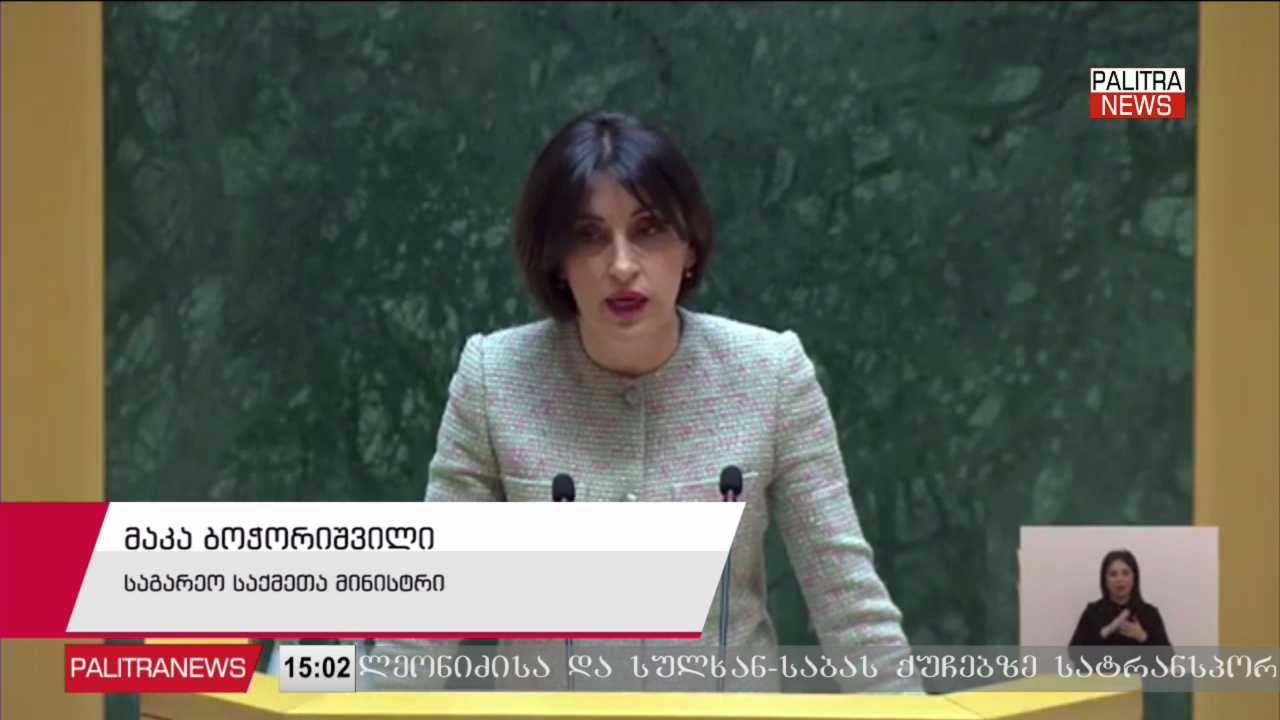 რა ნაბიჯებს დგამს საქართველო ევროკავშირთან მოლაპარაკებების დასაწყებად და რომელი რეკომენდაციები შესრულდა ევროკომისიის ანგარიშიდან - ამ და კიდევ 20 მდე კითხვას საპარლამენტო ტრიბუნიდან საგარეო საქმეთა მინისტრმა მაკა ბოჭორიშვილმა უპასუხა. საკანონმდებლო ორგანოში პარტია "გახარია საქართველოსთვის" გუნდის მიერ ინტერპელაციის წესით დაბარებულმა საგარეო უწყების ხელმძღვანელმა სიცრუეს უწოდა ინფორმაციას, რომ ევროინტეგრაციის პროცესი 2028 წლამდე "ქართულმა ოცნებამ“ ცალმხრივი გადაწყვეტილებით შეაჩერა. მაკა ბოჭორიშვილის განმარტებით, ხელისუფლებას ევროინტეგრაციის პროცესი არასდროს შეუჩერებია და პოლიტიკური დიალოგი საქართველოსთან 2024 წელს ბრიუსელის გადაწყვეტილებით შეჩერდა. საგარეო მინისტრმა თქვა ისიც, რომ საქართველო მზად არის აწარმოოს მოლაპარაკებები ევროკავშირთან, რისთვისაც საჭიროა მისივე სიტყვებით ევრობიუროკრატია ასოცირების შეთანხმებით ნაკისრი ვალდებულებების შესრულებას დაუბრუნდეს.