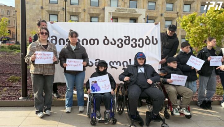 “მიეცით ბავშვებს წამალი” - ამ მოთხოვნით მთავრობის ადმინისტრაციასთან საპროტესტო აქცია მიმდინარეობს დიუშენის კუნთოვანი დისტროფიის მქონე ბავშვების მხარდასაჭერად.