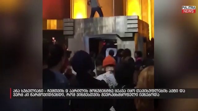ჩემთვის ეს იყო თავისუფლების აქტი და ვერც კი წარმოვიდგენდი, რომ ვინმესთვის შეურაცხმყოფელი იქნებოდა, - ამის შესახებ თბილისში, პარლამენტის შენობის წინ მიმდინარე აქციაზე, ერთ-ერთმა მონაწილემ ანა სუბელიანმა განაცხადა. იგი ერთ-ერთია, ვინც 12 მაისს აქციაზე 9 აპრილის მონუმენტზე ცეკვავდა. ,,ვცეკვავდი თავისუფლებისთვის, ვცეკვავდი დიახ, იმ მონუმენტზე, რომელიც ეძღვნება იმ ადამიანებს, ვინც თავისუფლებისთვის იბრძოდნენ. ",- განაცხადა სუბელიანმა.